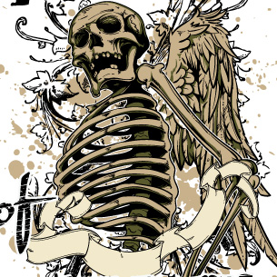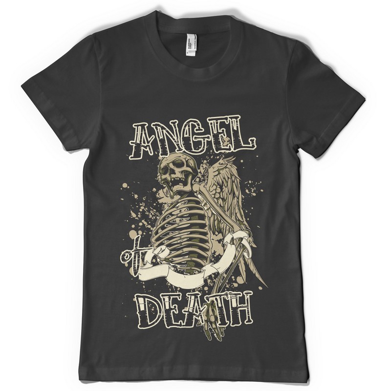 Angel death design template in vector format, featuring detailed skeleton now available for Adobe Illustrator, Adobe Photoshop and Corel Draw and can be used for digital printing and screenprinting .