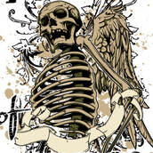 Angel skeleton on an ink spotted background