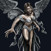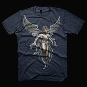 ''angel '' is unique Illustration of a girl with a couple of her wings. with the little sexy for dress,just my obsesion...cause i really really like that character, i use a simple colors pallete...Made with hand painting looking and dark style. Ready to print on t-shirt.