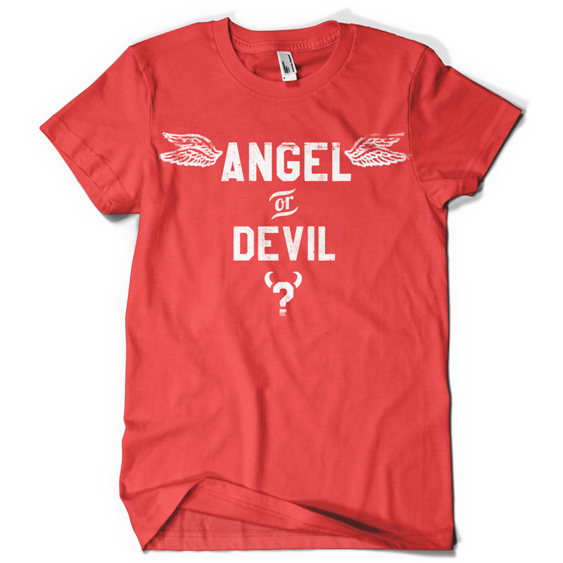 Angel or Devil graphic design template in vector format now available for Adobe Illustrator, Adobe Photoshop and Corel Draw and can be used for digital printing and screenprinting .