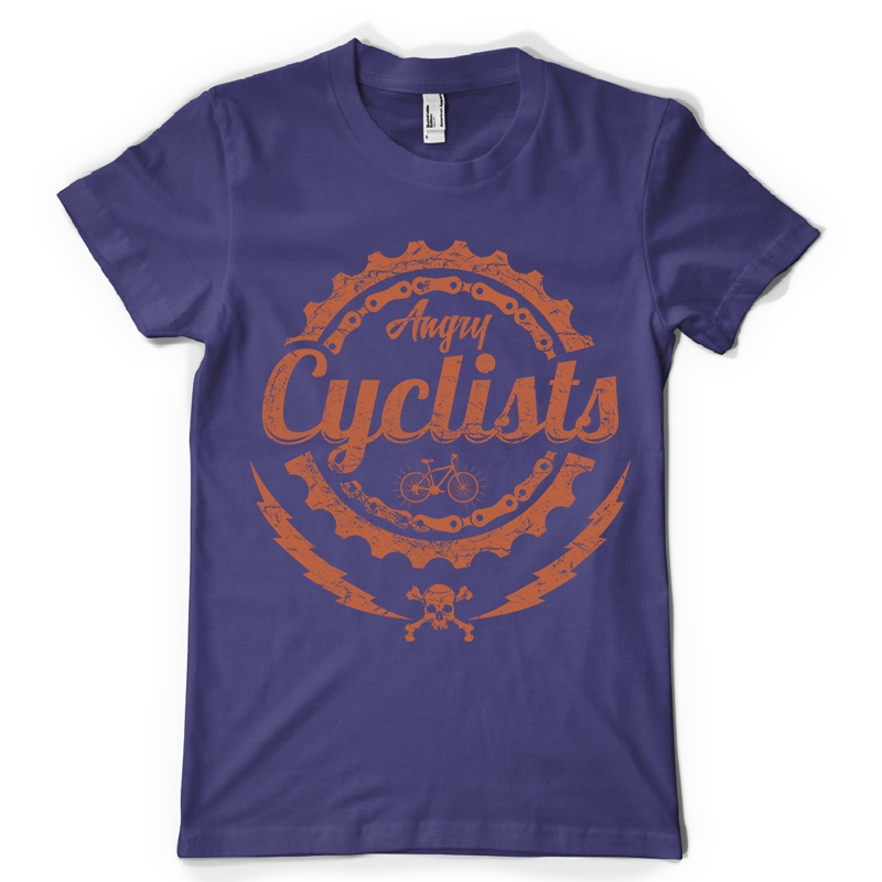Angry Ciclists t-shirt design features a detailed screen print of graphic logo message now available for Adobe Illustrator, Adobe Photoshop and Corel Draw and can be used for digital printing and screenprinting .