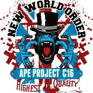Digital design featuring detailed screaming gentleman monkey. Ape Project C16 template is available in vector format and can be used for digital printing and screenprinting. The file will be available for Adobe Illustrator, Adobe Photoshop and Corel Draw.