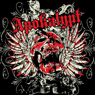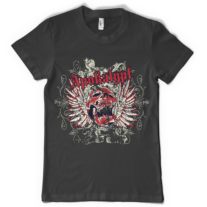 Apokalypt graphic design template in vector format, featuring detailed apocalyptic screaming skull now available for Adobe Illustrator, Adobe Photoshop and Corel Draw and can be used for digital printing and screenprinting .