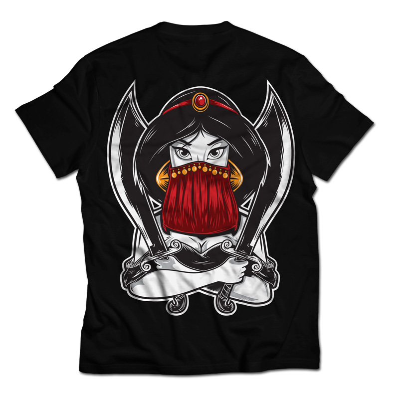 Arabian Princess. A funny character style illustration. Rebel Princess collections. Easy to add the text and replace colors. ZIP Features contain 1 EPS 10 1 Ai 1 PSD Size 16'x24' CMYK Color mode Layered Editable text
