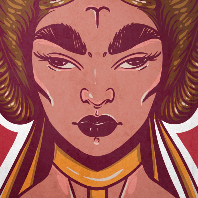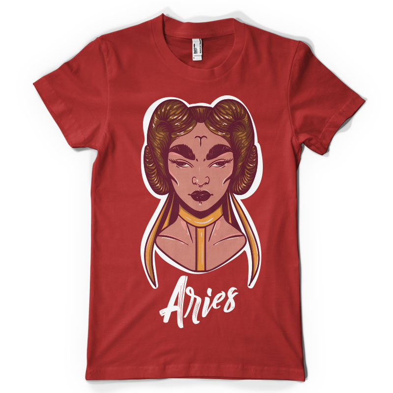 Aries- design featuring detailed portrait of a girl. This illustration was made in Ilustrator, the source file is avaible in PNG,AI,EPS,SVG format and can be used for screenprinting , digital print and tshirt design. Not editable text.