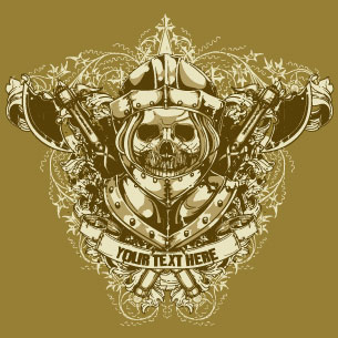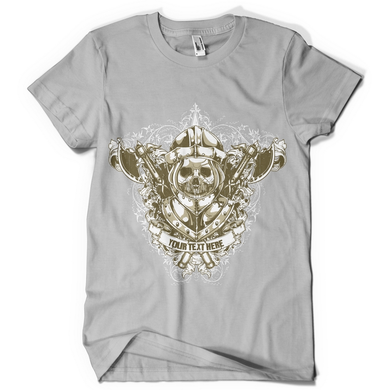 Armor graphic design template in vector format, featuring detailed skull warrior now available for Adobe Illustrator, Adobe Photoshop and Corel Draw and can be used for digital printing and screenprinting .