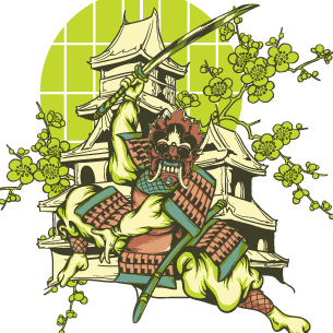 Asian warrior on a traditional background