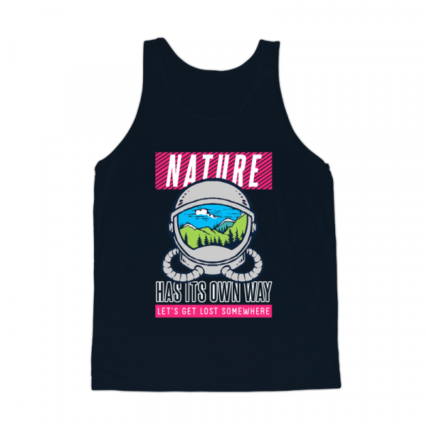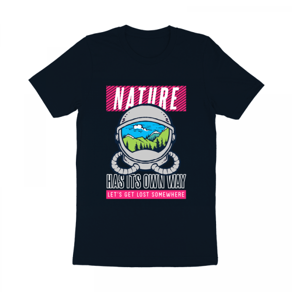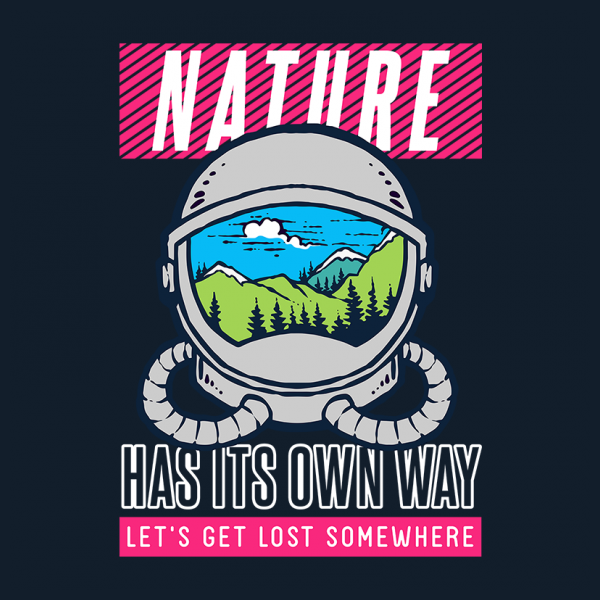 Vector illustration of astronaut with beautiful nature landscape on his helmet with 80's style graphic. Ready to print on t-shirt.