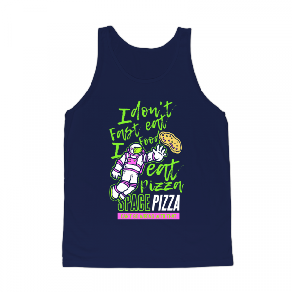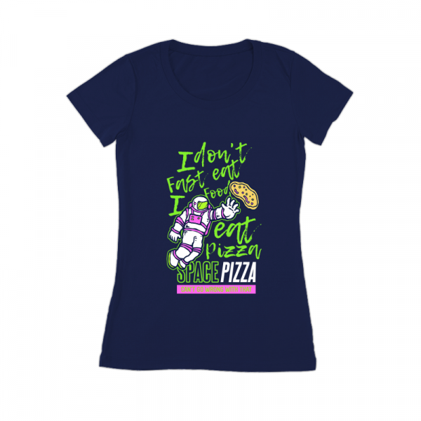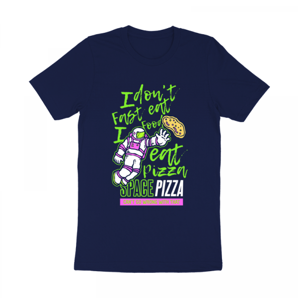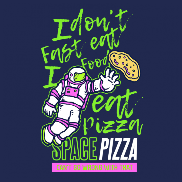 Vector illustration of astronaut trying to catch pizza on space. Ready to print on t-shirt.