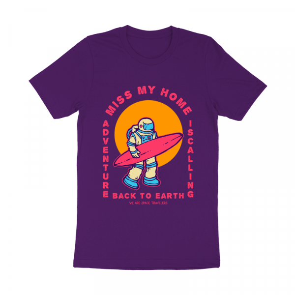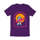 Vector illustration of an astronaut holding surfboard and ready to surf on the ocean with 80's style graphic. Ready to print on t-shirt.