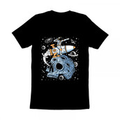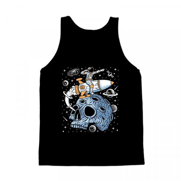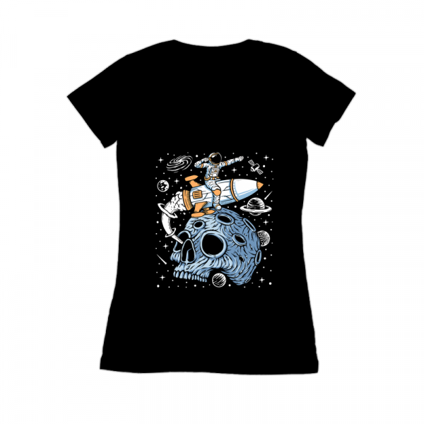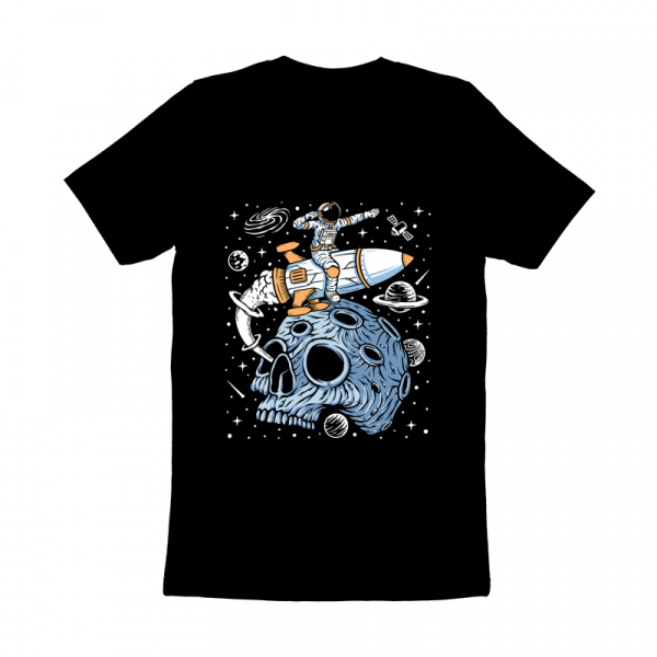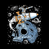 Astronaut leave planet skull with rocket