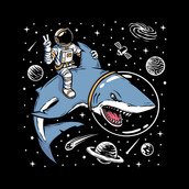 Astronaut riding shark