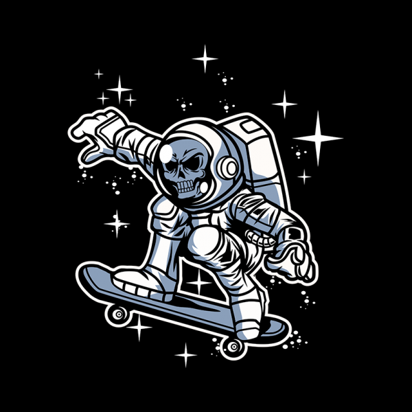 vector illustration of ASTRONAUT SKULL SKATEBOARD, this image is very cute for t-shirts and posters, this design is available in the form of files, CDR, AI, transparent backround PNG, JPEG, SVG, EPS, mookup not included