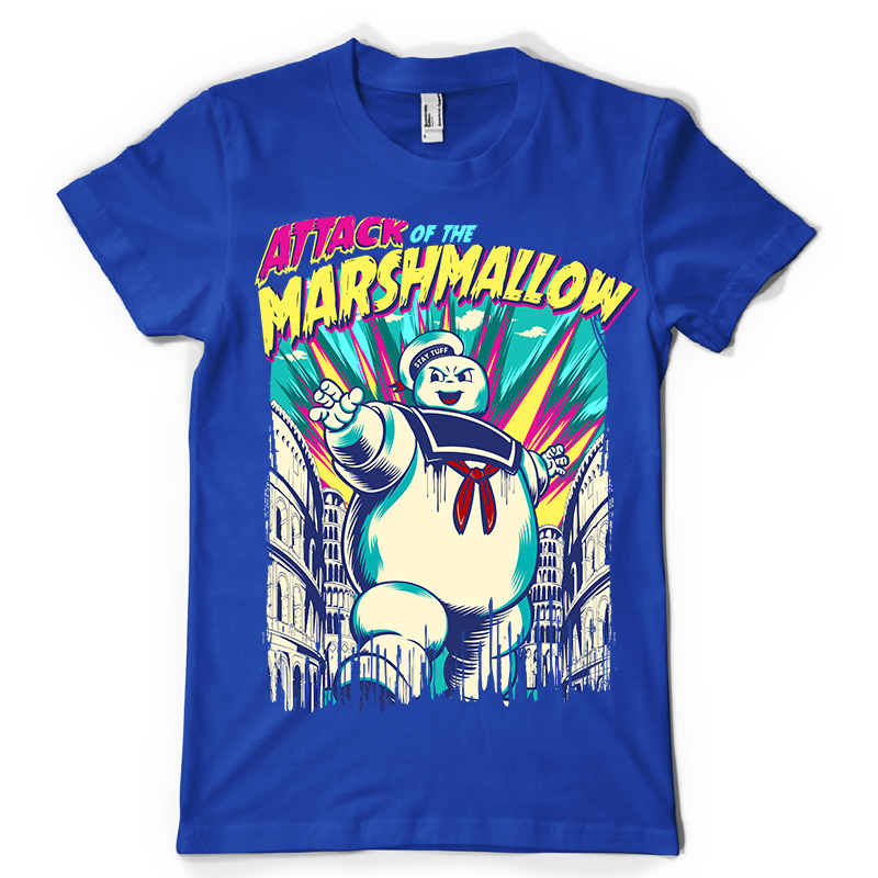 Attack of The Marshmallow design features a Funny Monster detailed screen print now available for Adobe Illustrator, and Corel Draw and can be used for digital printing and screenprinting.