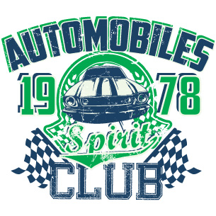 Digital design featuring detailed race car. Automobiles Club template is available in vector format and can be used for digital printing and screenprinting. The file will be available for Adobe Illustrator, Adobe Photoshop and Corel Draw.
