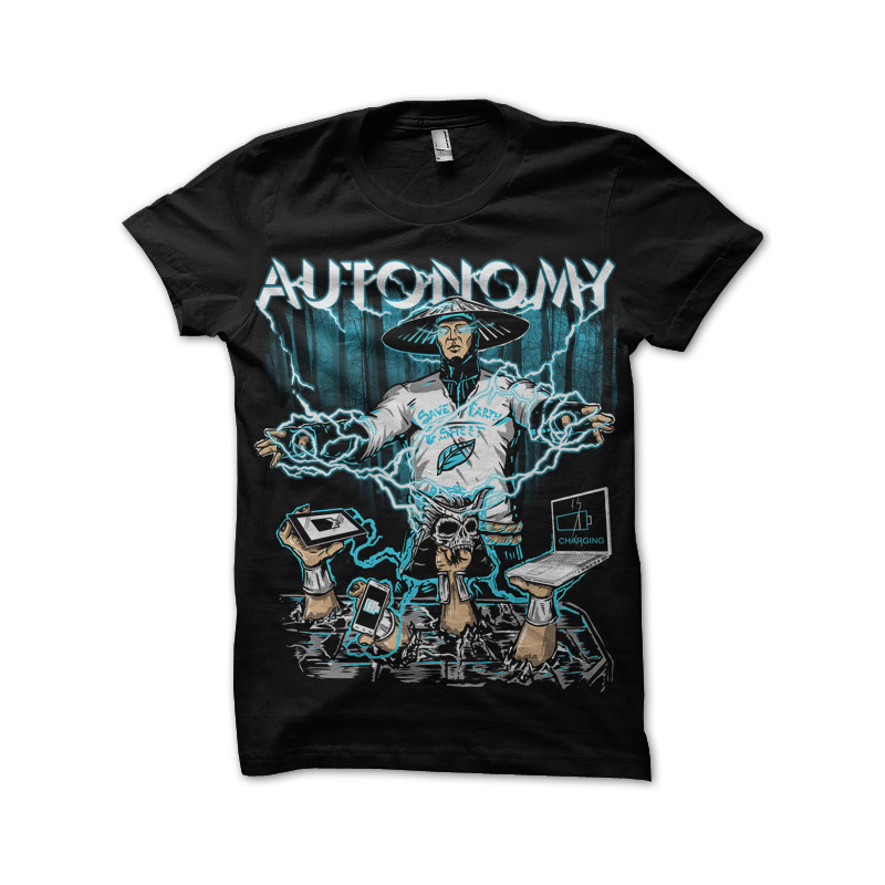 Long development time for this one, hope it was worth it. Because maximum autonomy for your devices can only be achieved when you have full control over electricity...pays to be a Lightning God. This is a 3 color design on black, print-ready, Photoshop compatible file. Please delete the top layer.