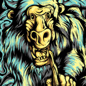 Illustration of baboon monster eating flesh with horror looking. Ready to print on t-shirt.
