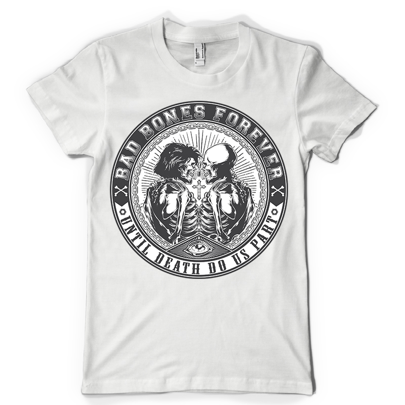 Bad Bones Forever design features a forever love detailed screen print now available for Adobe Illustrator, Adobe Photoshop and Corel Draw and can be used for digital printing and screenprinting