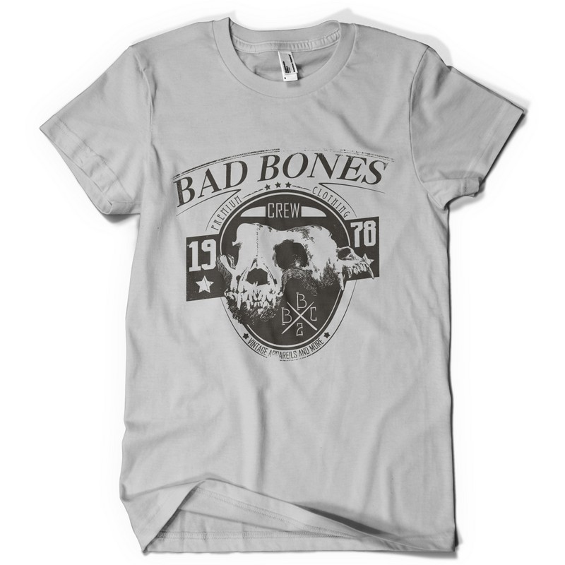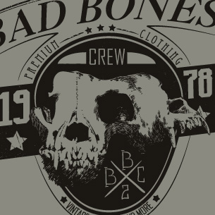 Bad Bones graphic design template in vector format, featuring detailed animal skull now available for Adobe Illustrator, Adobe Photoshop and Corel Draw and can be used for digital printing and screenprinting .