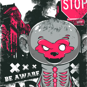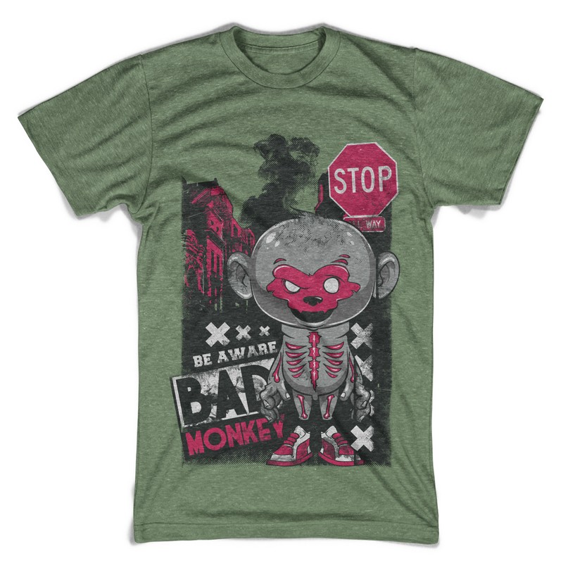 Bad monkey graphic design template in vector format, featuring detailed skeleton cartoon monkey now available for Adobe Illustrator, Adobe Photoshop and Corel Draw and can be used for digital printing and screenprinting .