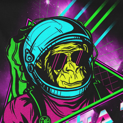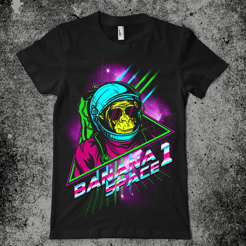 banana space 1 design features a monkey in space design with detailes. Screen print now available for Adobe Photoshop and can be used for digital printing and screenprinting