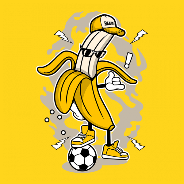 Vector illustration of BANANA STREET SOCCER, this image is very cute for t-shirts and posters, this design is available in the form of files, CDR, AI, transparent backround PNG, JPEG, SVG, EPS, mookup not included.