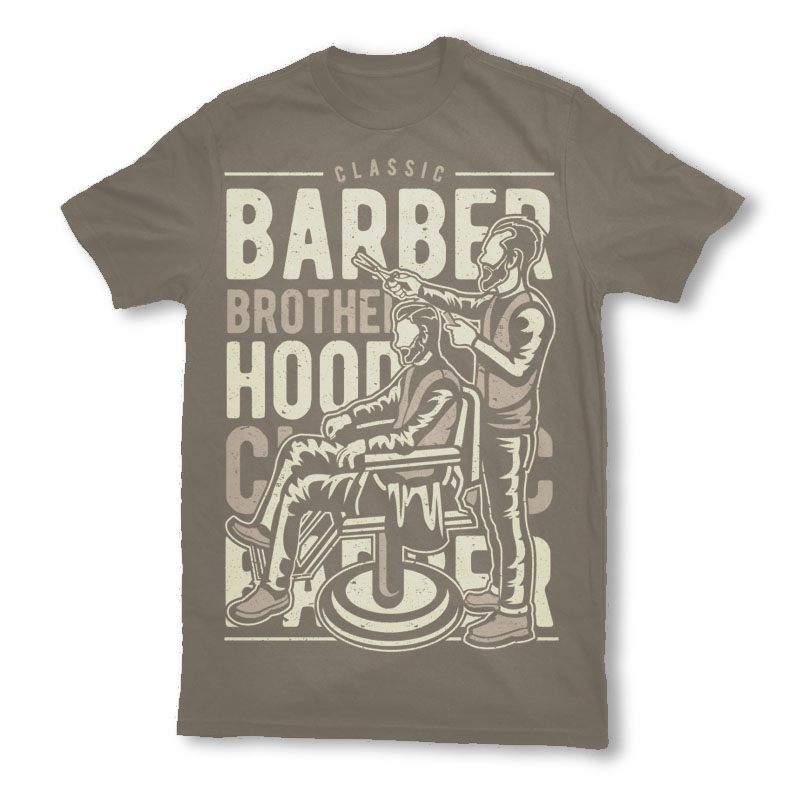 Barber Brotherhood Tshirt Design Template based on vector files , such as AI and CDR also with PSD separated Layers file, the design has 2 color print, it can be used for digital printing and screen printing.