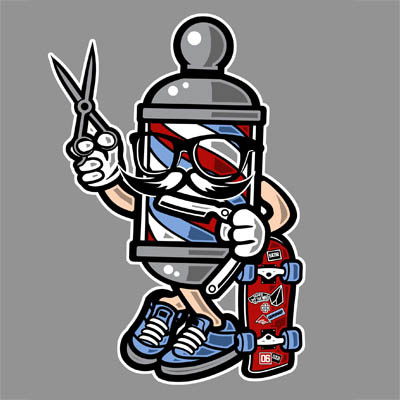 Barber Skater Cartoon character style T-shirt design template , The file is PSD separated Layers. Can be used for digital printing and screen printing.