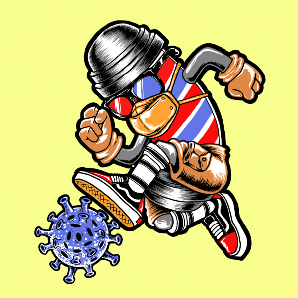Hi, This is artwork of inspired by a barber pole struggling to beat the pandemic
