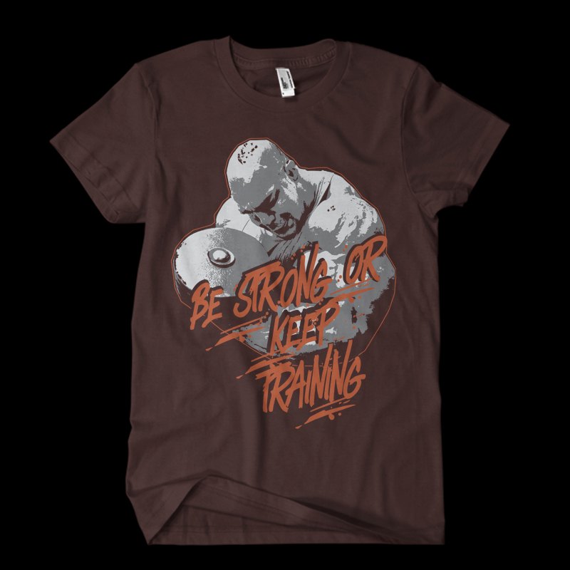 be strong or keep training Gym shirt design featuring typography style quote, with details. The files available are suitable for Adobe Illustrator and Adobe Photoshop and can be used for digital printing and screenprinting.