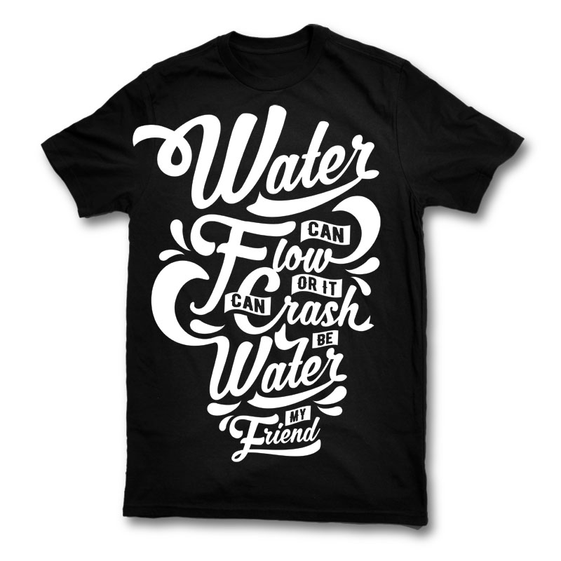 Be Water My Friend Typography Design created with CorelDraw .1 colour print, AI, CDR, PSD File separated Layers. Can be used for digital printing and screen printing.