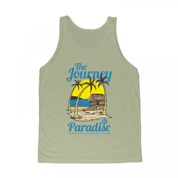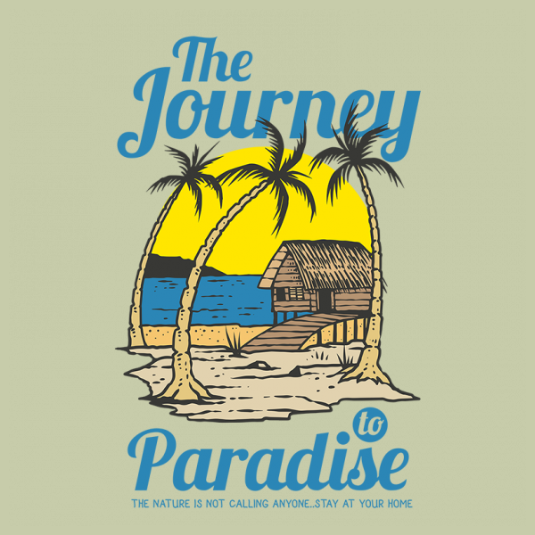 Cabin on the palm tropical beach on summer with sunset background. Ready to print on t-shirt.