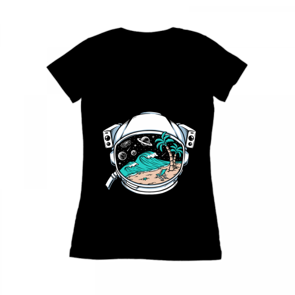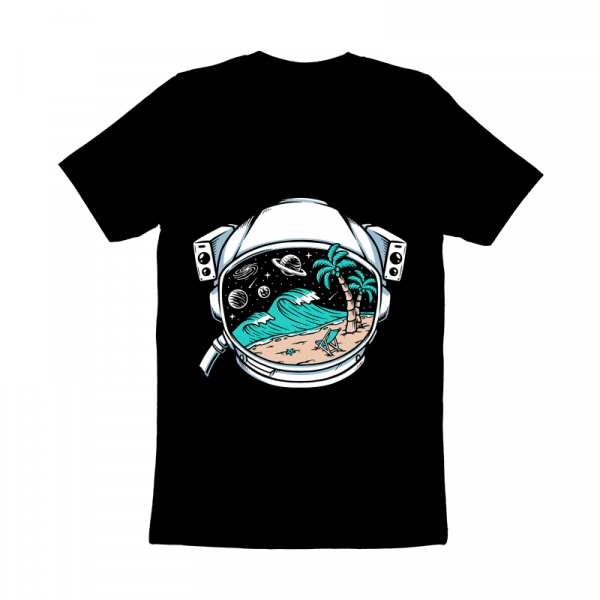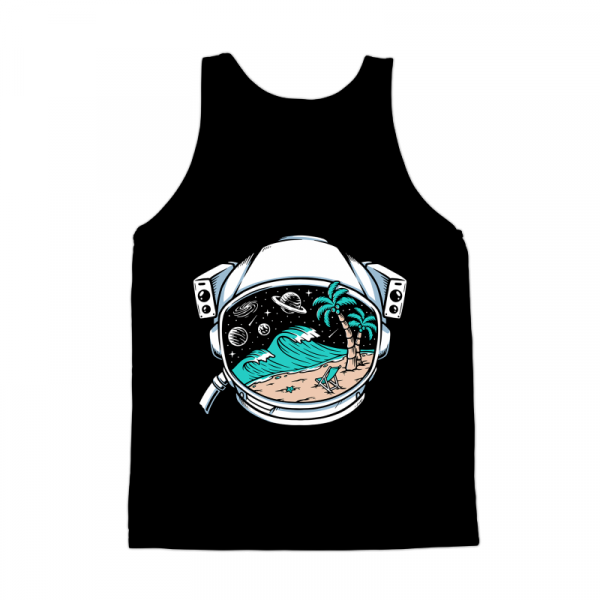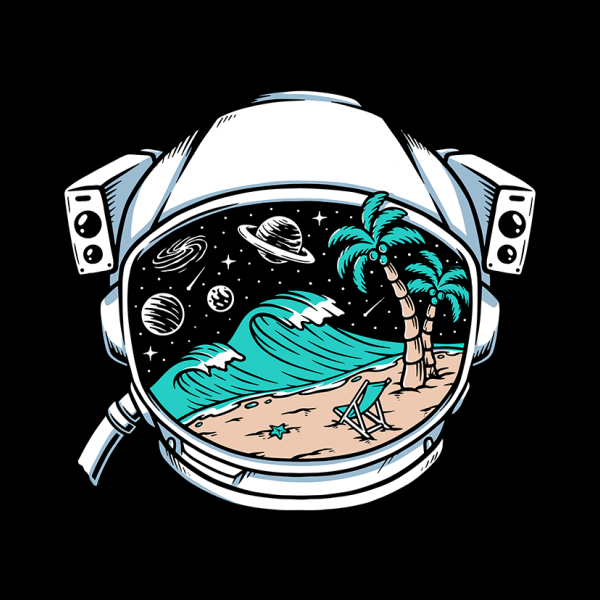 Beach view in astronaut helmet