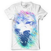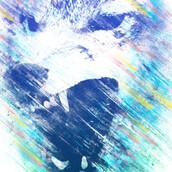 An illustration of an angry wolf ready to kill and attack with a modern feel of colored ice patterns as the main effect on the design with neon colors of blue, teel, pink, gray and white.