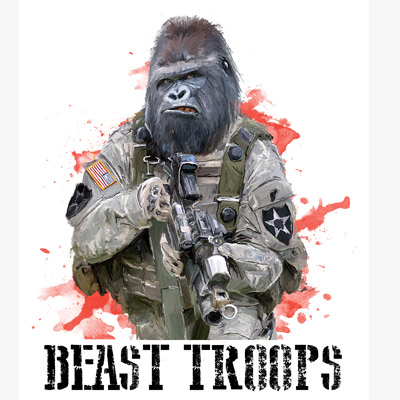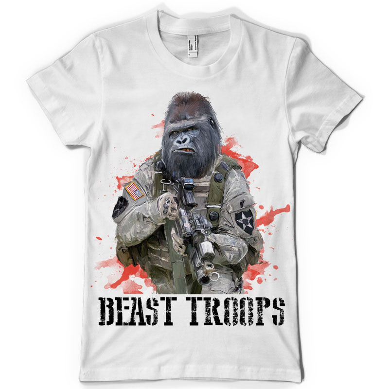 Beast Troops design t-shirt features available for Adobe Photoshop with layers. The text cannot be edited but the colour background can be changed. Design can be used for digital printing. Ready to print or use in anything you want.