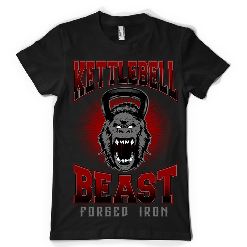 Beast in Adversity design features a Kettlebell Gorilla detailed screen print now available for Adobe Illustrator, and Corel Draw and can be used for digital printing and screenprinting.