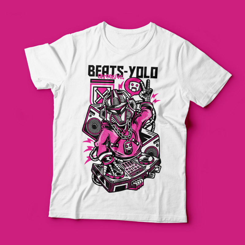 Beats-Yolo a Character Design that was made in adobe illustrator. Based on vector file , easy to resize and edit. File features AI, EPS, and PNG all in zip, CMYK color mode and 3 color (2 color if in white/black shirt). Can be used for digital printing and screen printing.