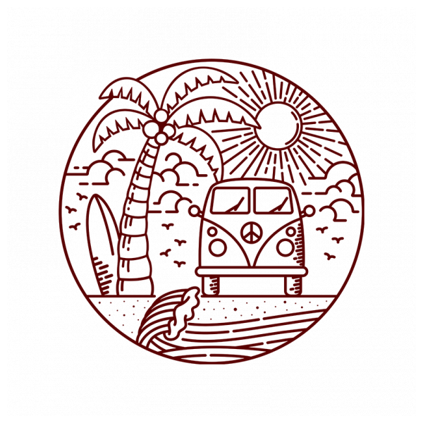 Beautiful beach views line illustration