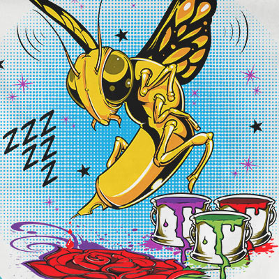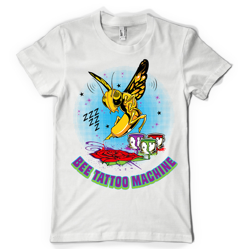 Bee Tattoo Machine t-shirt design features a detailed screen print of inked rose now available for Adobe Illustrator, Adobe Photoshop and Corel Draw and can be used for digital printing and screenprinting .
