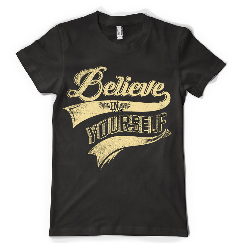 Believe design features a Typography distress detailed screen print now available for Adobe Illustrator, Adobe Photoshop and Corel Draw and can be used for digital printing and screenprinting