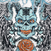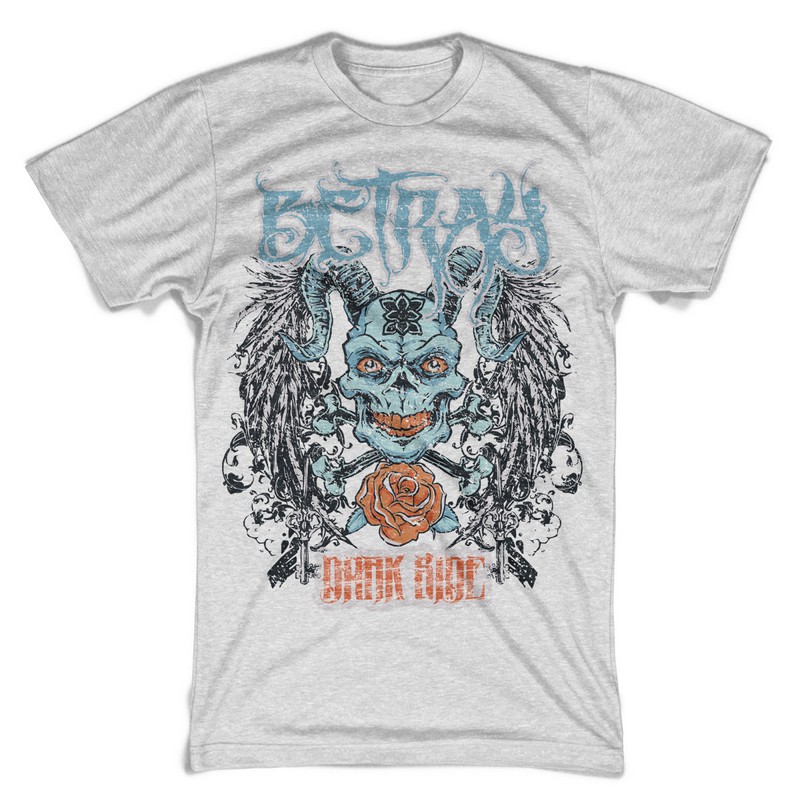 Digital design featuring detailed creepy horned skull. Betray template is available in vector format and can be used for digital printing and screenprinting. The file will be available for Adobe Illustrator, Adobe Photoshop and Corel Draw.