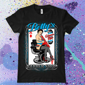 Betty´s t-shirt design features a pin up barber design detailed screen print now available for Adobe Illustrator, Adobe Photoshop and can be used for digital printing and screenprinting.