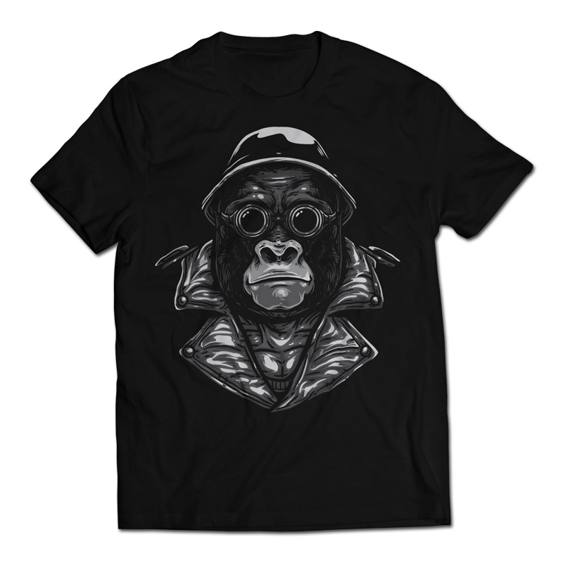 Big Bro. An illustration of Gorilla wearing leather jacket, googles and helmet. Works with dark and light backgrounds. Easy to customize. 1 PSD, 1 Eps 10, 1 Ai layered file.