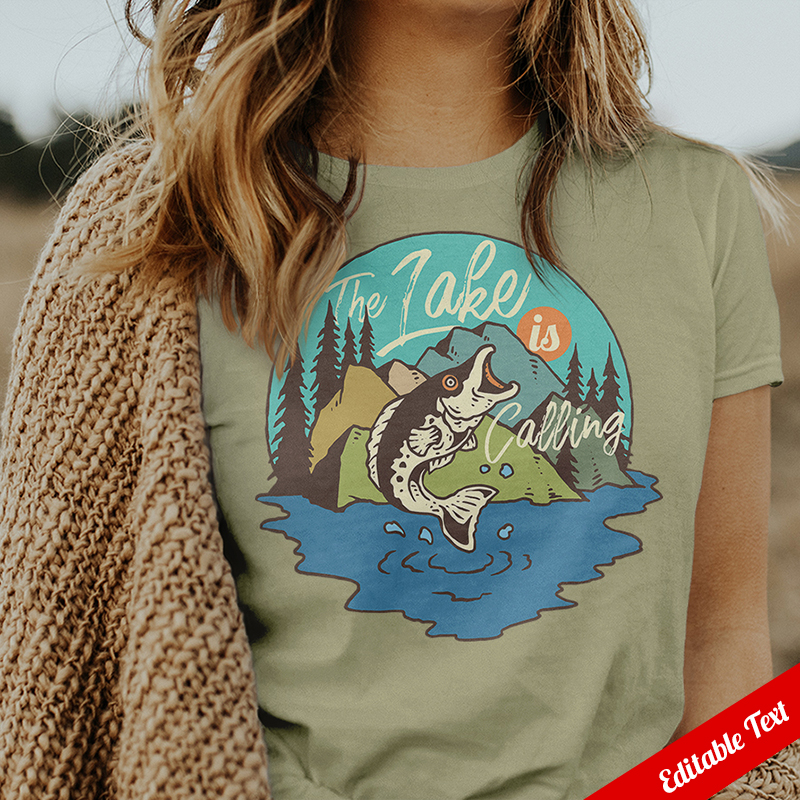 Vector illustration of big fish jumping from the lake. Ready to print on t-shirt.