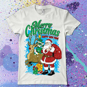 Big Santa t-shirt design features a rudolph and santa detailed screen print now available for Adobe Illustrator, Adobe Photoshop and Corel Draw and can be used for digital printing and screenprinting
