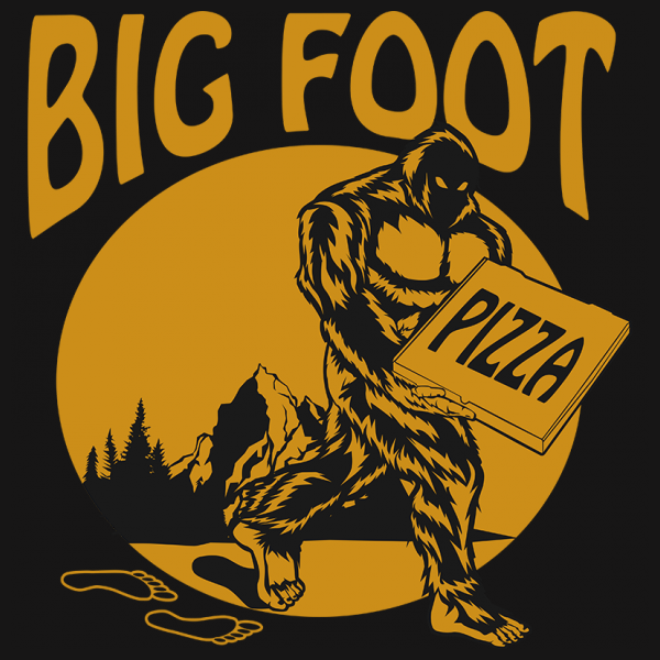 big foot pizza Vector illustration tshirt design , 2 colors available on Corell Draw X4 file, Adobe illustrator file , EPS , Transparent Back Ground PNG file , PDF file its can be use for Digital printing and screen printing