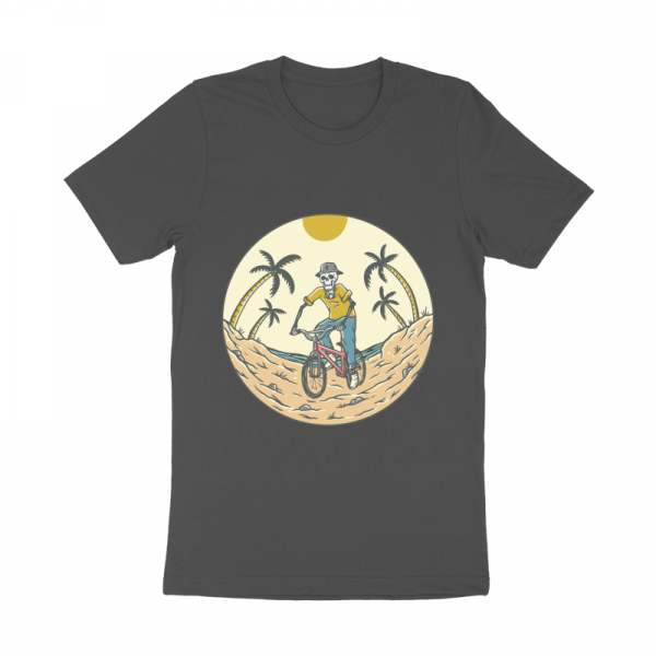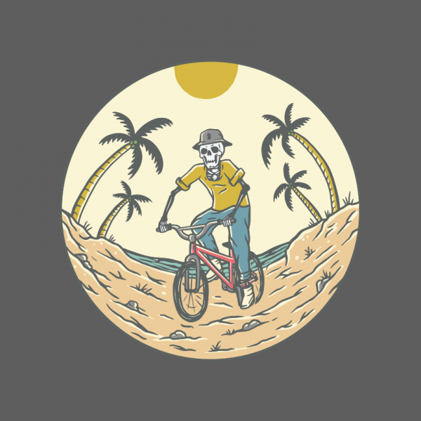 Bike to the Beach is a vintage illustration that is suitable for apparel or merchandise about nature, outdoors, summer, vacation, holiday, beach, holiday, bicycle, bike, sport, skull, skeleton, horror, biker, halloween, sea, ocean.