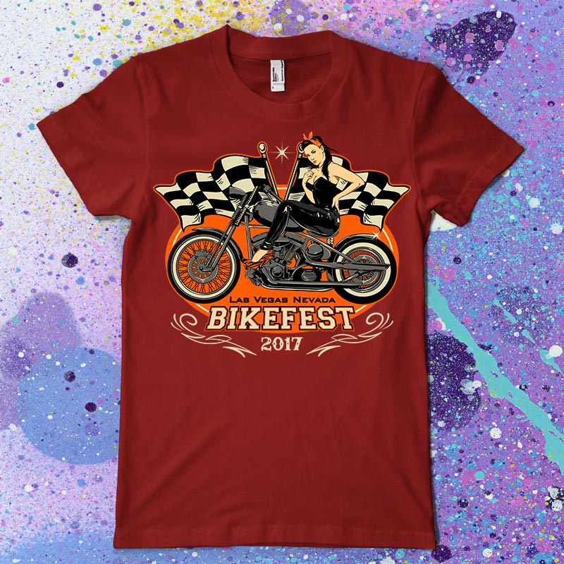 Bikefest t-shirt design features a Motorcycles design detailed screen print now available for Adobe Illustrator, Adobe Photoshop and Corel Draw and can be used for digital printing and screenprinting