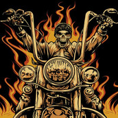 Tittle " Biker Skull". Design is my original hand draw. Inking and coloring used with Photoshop process. 5 layer color and high resolution format. Can print on any color t shirt. Enjoy!!