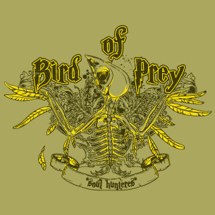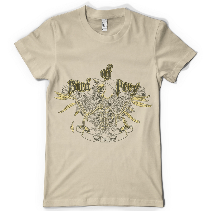 Birds of prey digital template in vector format, featuring detailed bird skeleton with flourish details now available for Adobe Illustrator, Adobe Photoshop and Corel Draw and can be used for digital printing and screenprinting .